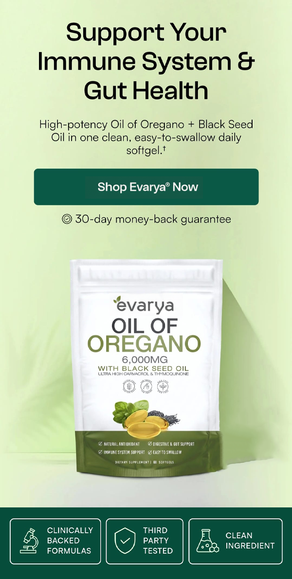 I've struggled with digestive issues for years. After just 3 weeks with Evarya's Oil of Oregano, I finally feel like myself again. No more bloating, more energy, and my gut feels balanced. This is the only supplement that's actually delivered results!